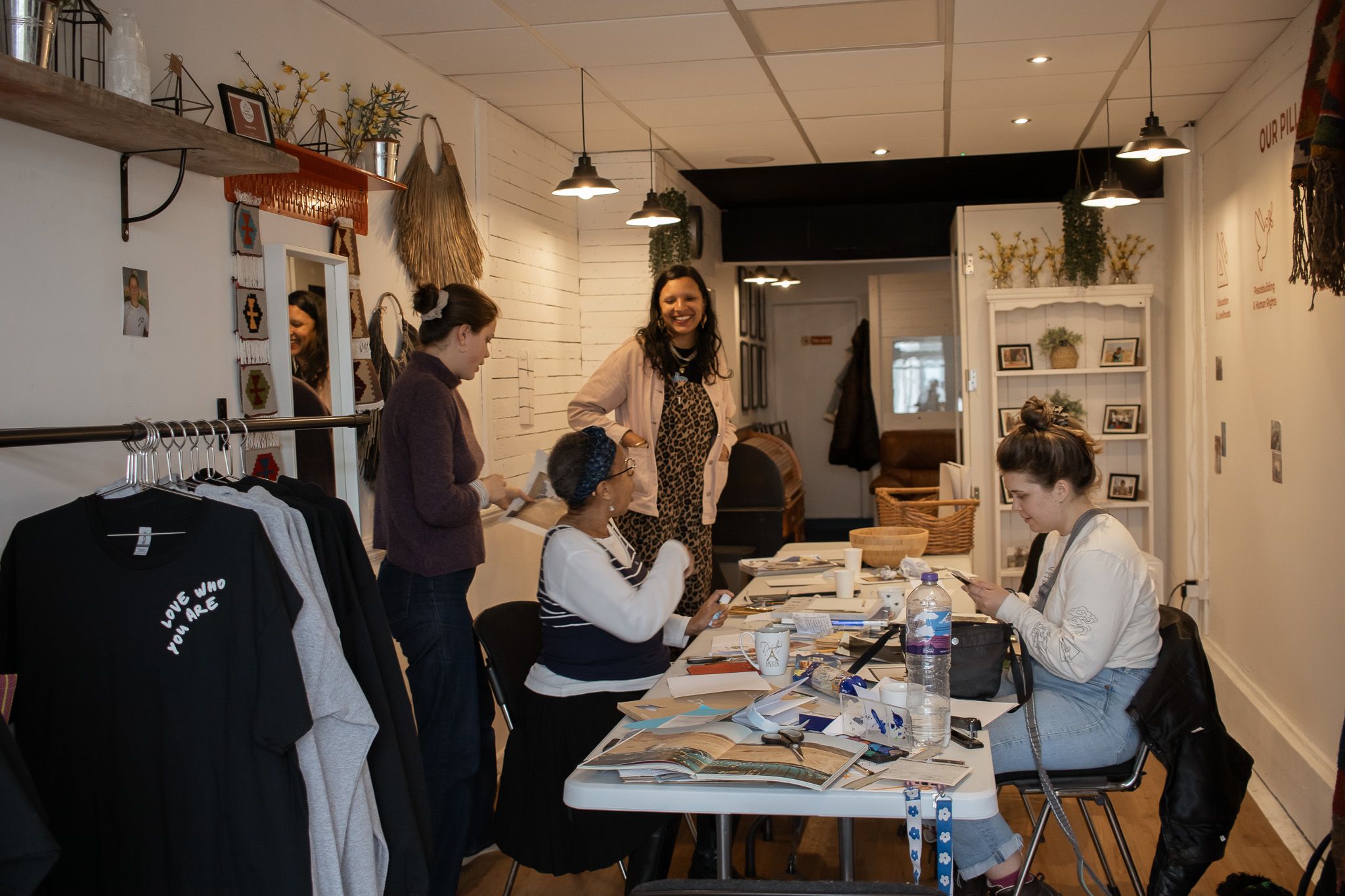 The hub serves as a staff office, a key fundraising pillar selling handmade products by women in KRI, and a central operating space for our UK programmes.